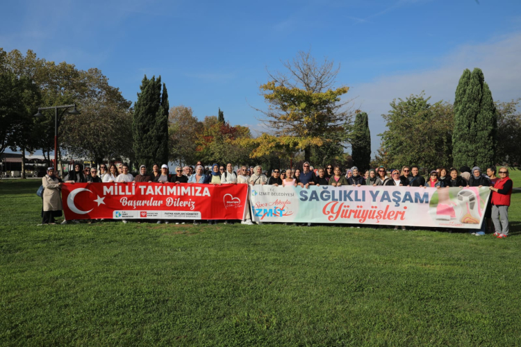 İzmit Belediyesinin düzenlediği sağlıklı yaşam yürüyüşü etkinliğinde, katılımcılar bu akşam kentimizde oynanacak Türkiye–Gürcistan maçında milli takıma başarı dilemek için destek pankartı açtı