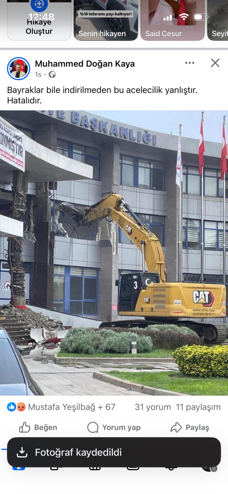 Vatandaşlar ayrıca, binanın içinde bulunan kapı, pencere ve diğer malzemelerin dahi sökülmeden yıkım işleminin başlatılmasına tepki göstererek “Yangından mal mı kaçırıyorsunuz? Bayrakları da mı yıkacaksınız?”sorularını yöneltti.