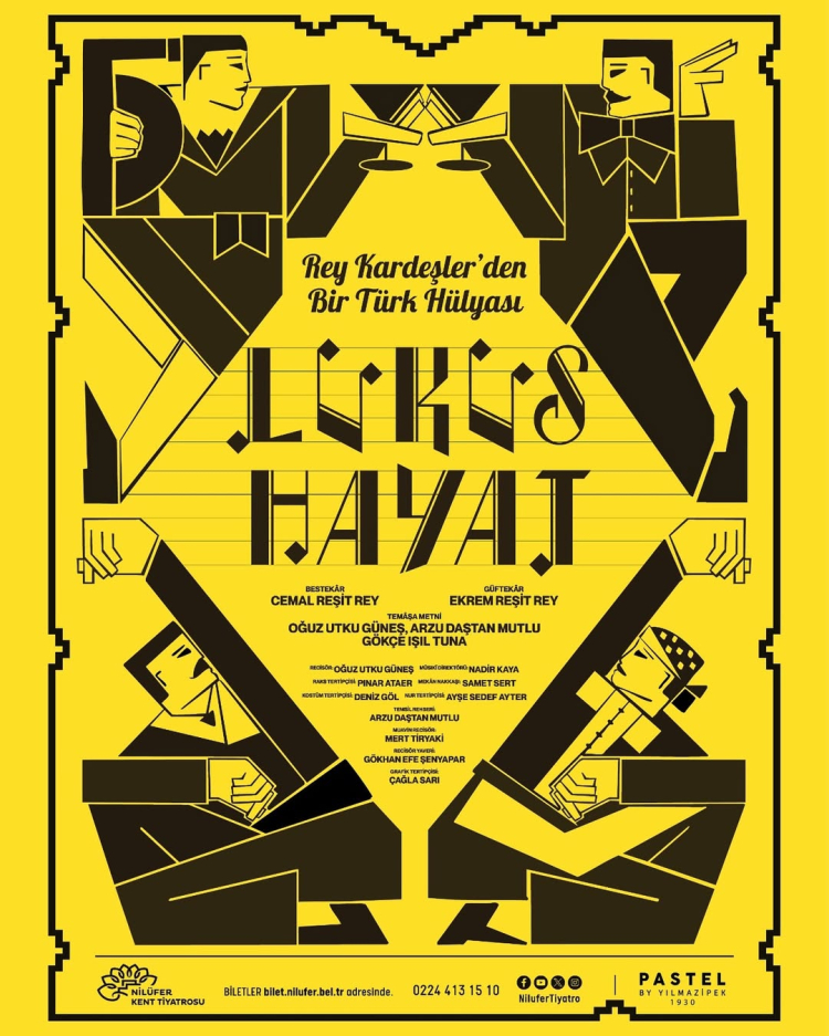1933’te bestelerini Cemal Reşit Rey’in, güftelerini ise Ekrem Reşit Rey’in yaptığı “Lüküs Hayat” müzikali, Oğuz Utku Güneş tarafından yeniden yorumlanarak yönetiliyor. Güncel metin Oğuz Utku Güneş’in yanı sıra Arzu Daştan Mutlu ve Gökçe Işıl Tuna tarafından kaleme alındı. Oyunun Müzik Direktörlüğünü Nadir Kaya, Koreografını Pınar Ataer, Sahne Tasarımını Samet Sert, Kostüm Tasarımını ise Deniz Göl yapıyor.