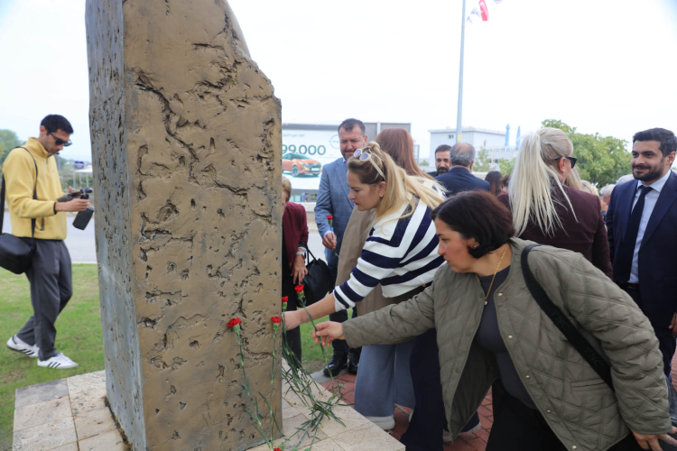 Konuşmanın ardından anma töreninde bulunan katılımcılar Ahmet Taner Kışlalı Büstü’ne karanfil bıraktı.