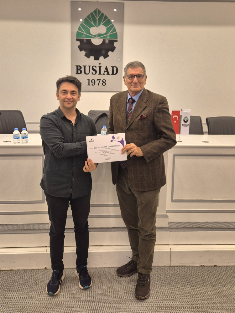 Bursa Sanayicileri ve İşinsanları Derneği (BUSİAD), Bursa Uludağ Üniversitesi ve Bursa Felsefe Kulübü’nün paydaşlığyla düzenlenen Açık Kapı Toplantıları/Felsefe Söyleşileri 2025-2026 döneminin ilk toplantısında, Koç Üniversitesi Felsefe Bölümü Öğretim Üyesi Doç. Dr. Erhan Demircioğlu, “Zihin Felsefesi” başlığında bir sunum yaptı.